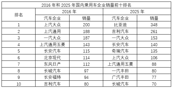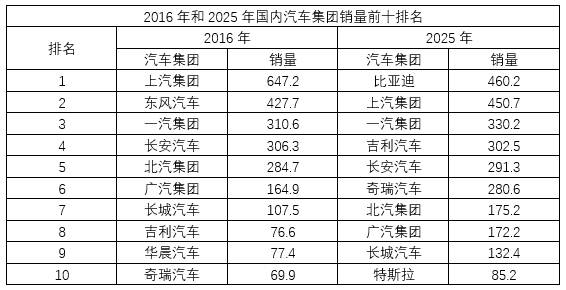 中国汽车行业的发展变化有多快?我们简单的梳理了一下2016年和2025年几项主要数据的对比,请各位看官来惊叹一下这个变化之大!