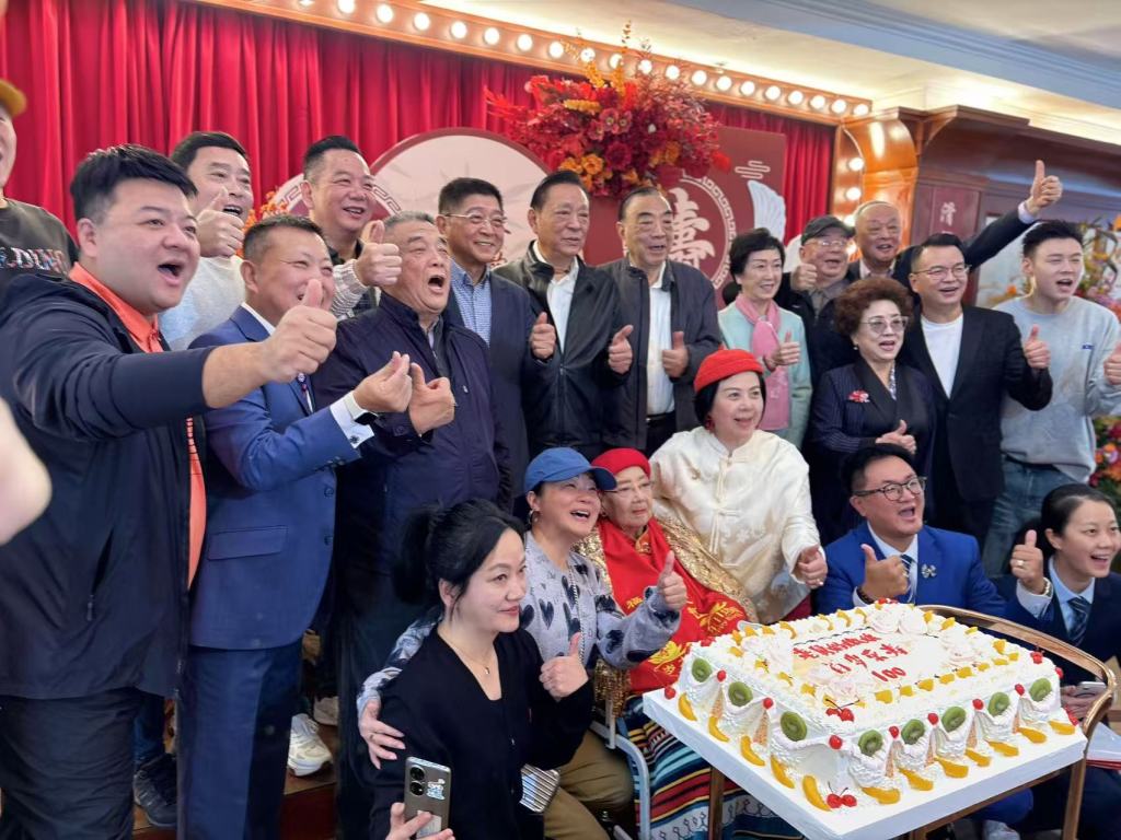 2025年11月3日,上海国际饭店的摩天厅一派喜气洋洋。上海观众熟悉的“老舅妈”、滑稽表演艺术家嫩娘即将迎来百岁寿辰,提前两天,上海市人民滑稽剧团也是现在上海独脚戏艺术传承中心的众多滑稽名家齐聚一堂,为嫩娘老师举办贺寿礼。王汝刚、吴新伯、姚祺儿、毛猛达、龚仁龙、刘敏、王文丽、张定国、陶德兴、骆文莲等共同为嫩娘送上百岁大寿祝福。
